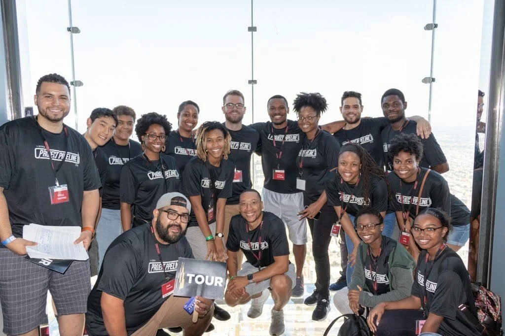 Project Pipeline Summer Camp mentors at Willis Tower. Photography by Kai Brown. Photo courtesy of Imani Dixon.