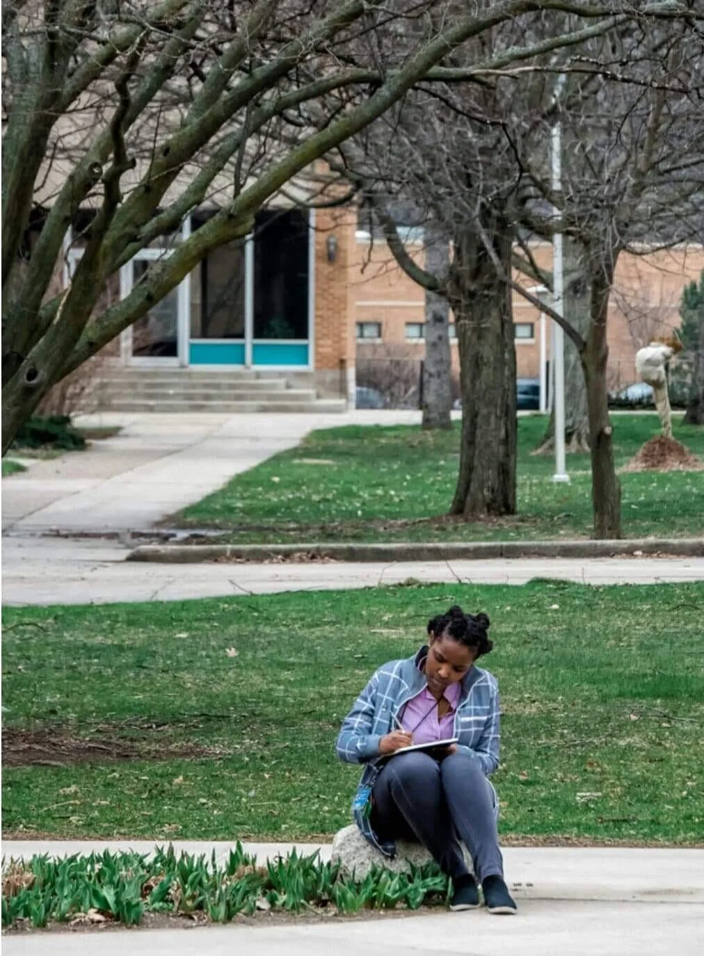 Sketching in nature . Photo credit Prof. Troy Homenchuk. Photo Courtesy of Gwendoline Albright Ndikumagenge