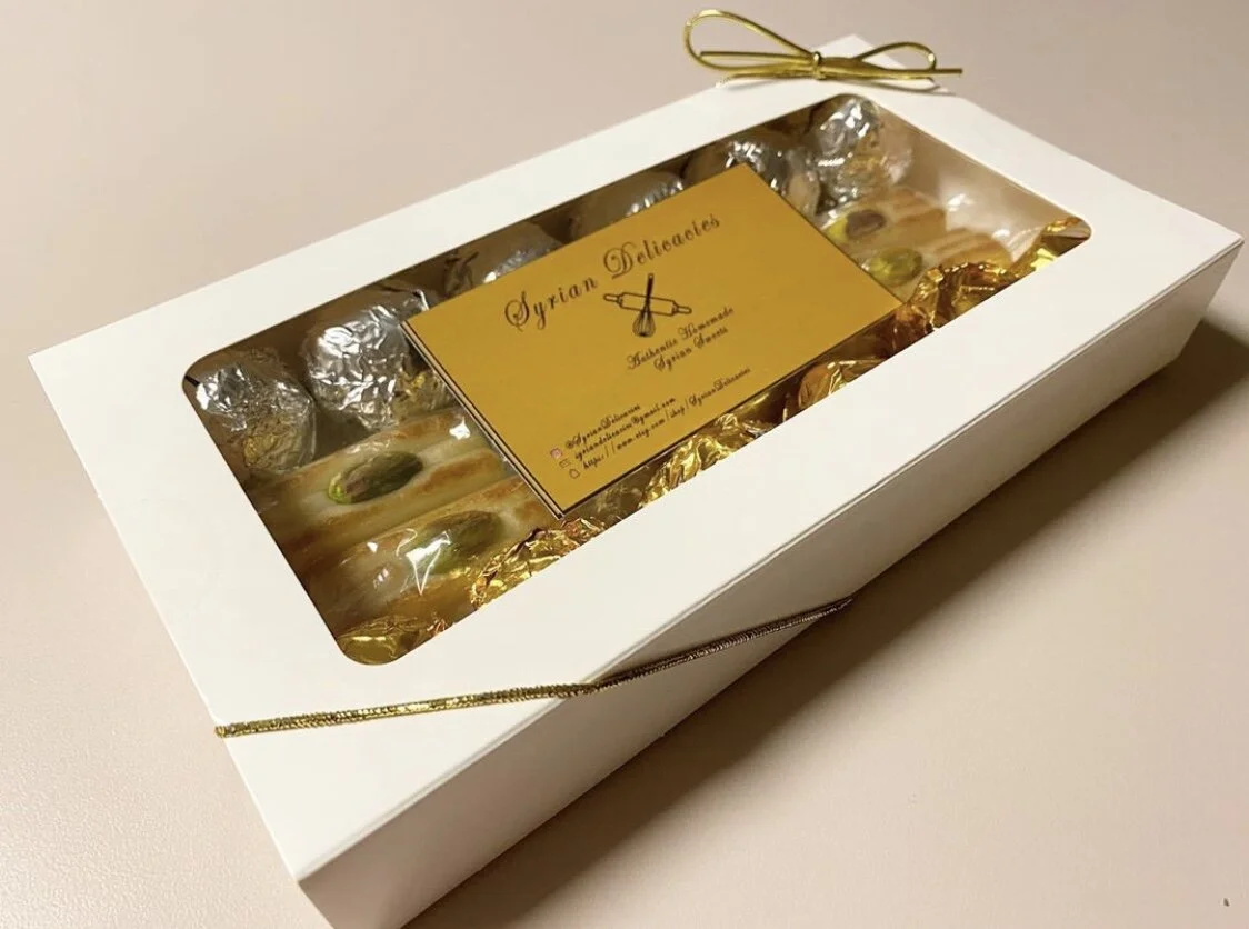 Baking has always been my happy place. Whenever I needed a stress reliever or a pick me up, I would head to the kitchen and get baking. I find baking to be a form of design, but instead its edible! Upon graduating two years ago (June 2018), I had the opportunity to travel back home to Aleppo, Syria. I had not been to in over ten years, therefore there was a whole lot I was missing, especially THE SWEETS. Coming back to NY I realized that my favorite sweets are no where to be found locally or in the US. So, I did some research, consulted with “family chefs”, gathered my intel and started producing traditional Syrian sweets. It took some tweaking and adjusting to get to the perfect result, but I am happy to say that I am very proud of where we are at this time.